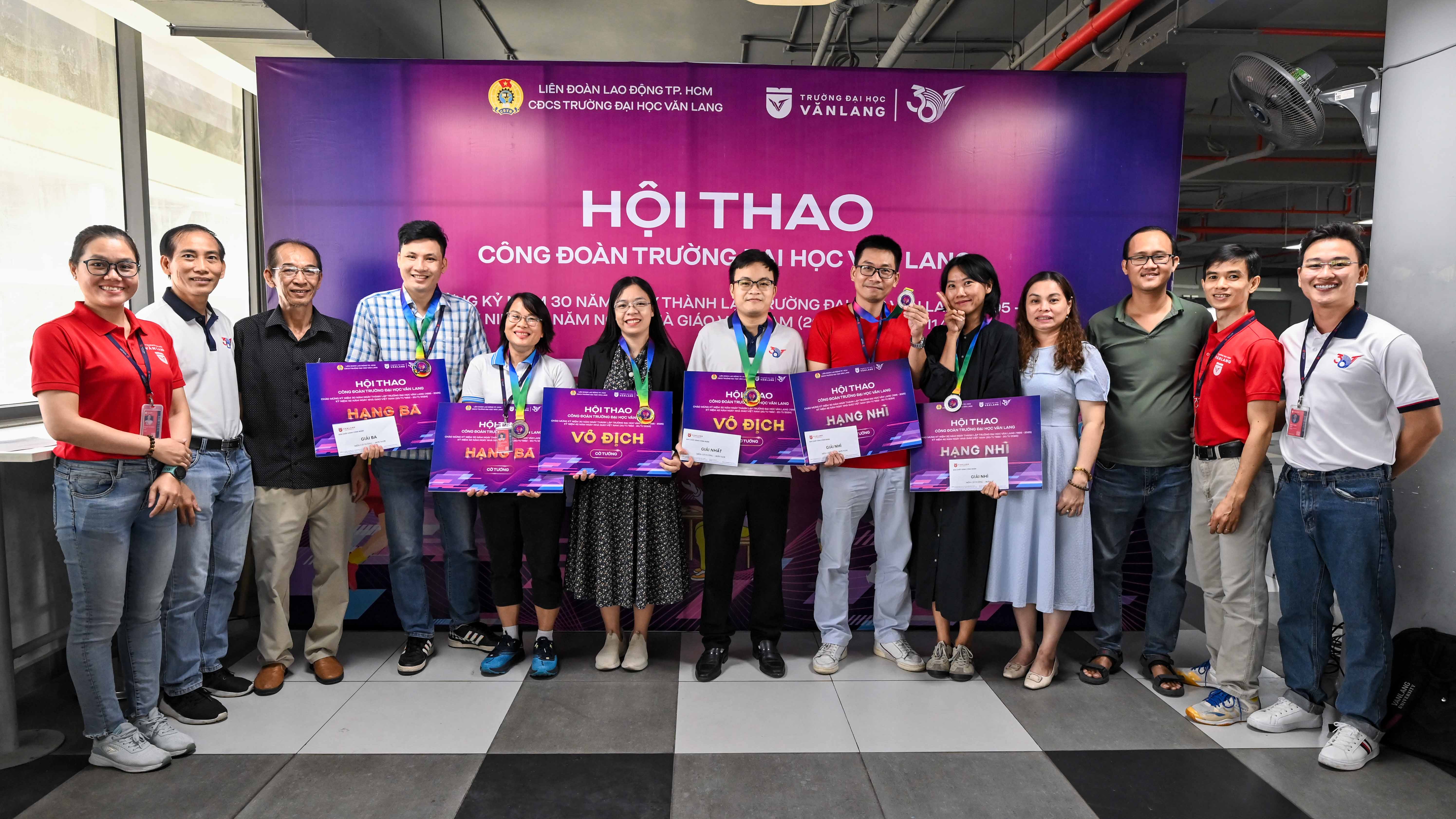 In celebration of the 42nd anniversary of Vietnam Teachers' Day on November 20th and with the aim of creating a vibrant and healthy recreational space for staff, lecturers, and employees, Van Lang University Trade Union organized the 2024 Sports Festival. The event featured engaging competitions in Chess, Chinese Chess, Badminton, Air Volleyball, and Football, drawing enthusiastic participation from union members across the university