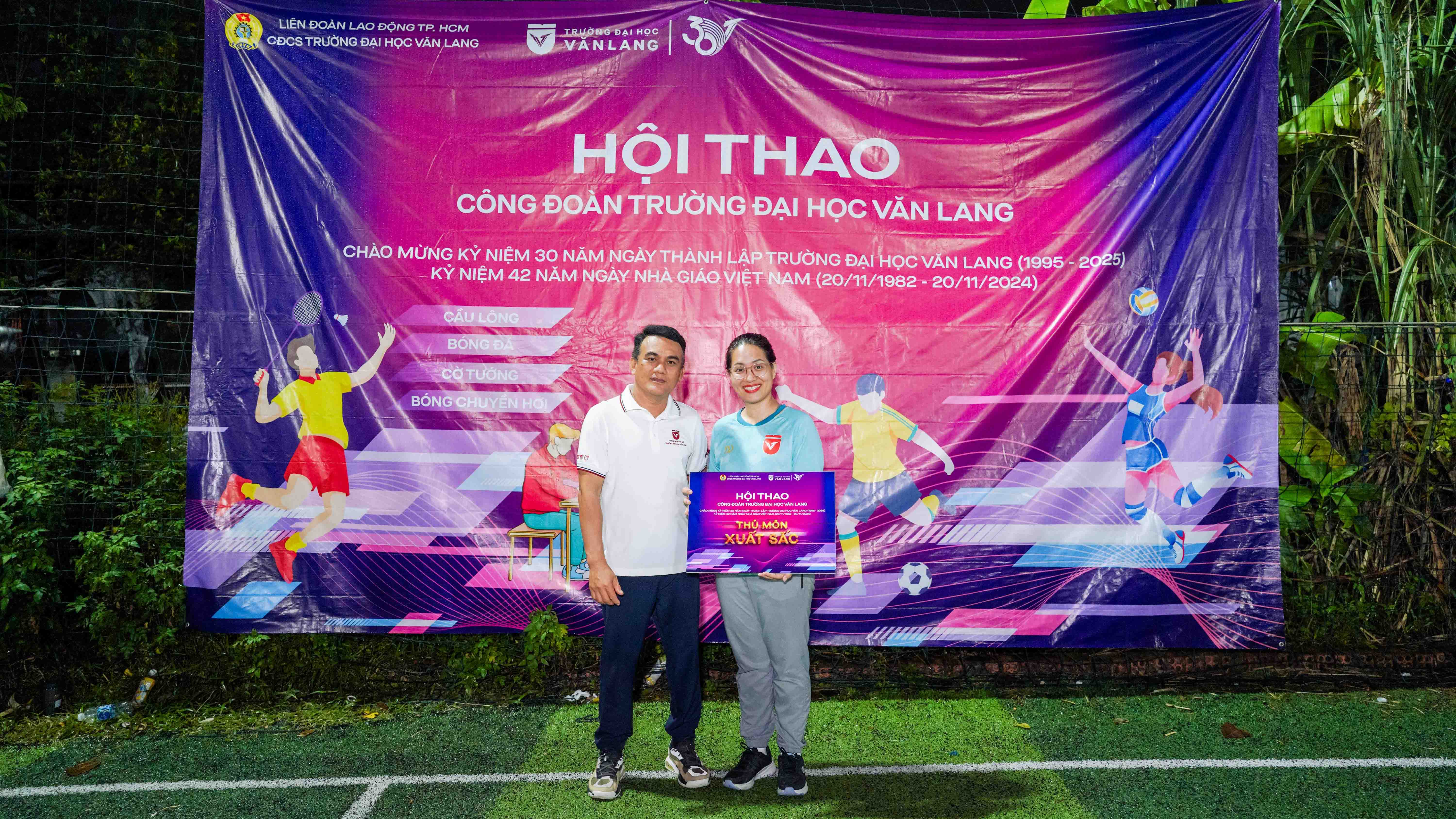 The 2024 Trade Union Sports Festival at Van Lang University took place from November 8th to November 20th, featuring four sports: air volleyball, football, badminton, and Chinese chess. With many lecturers signing up, the festival became an exciting occasion for "athletes" from different Faculty/Institute/Department to showcase their talents through strategic play, teamwork, and engaging matches, creating a vibrant atmosphere for this year's competition.