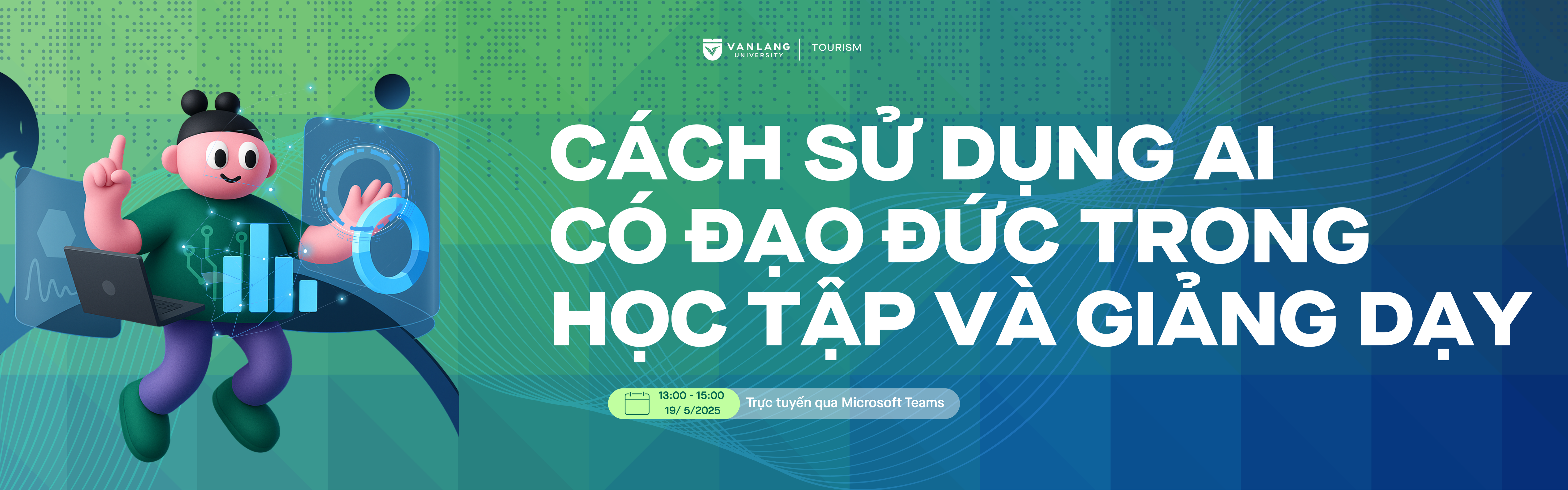 Ngày 19/05/2025, Khoa Du Lịch, Trường Đại học Văn Lang tổ chức chuyên đề học thuật “Cách sử dụng AI có đạo đức trong học tập và giảng dạy” nhằm tạo diễn đàn trao đổi chuyên sâu về ứng dụng trí tuệ nhân tạo trong giáo dục đại học, đồng thời nhấn mạnh tầm quan trọng của việc tích hợp AI một cách có trách nhiệm và phù hợp với ngữ cảnh Việt Nam.