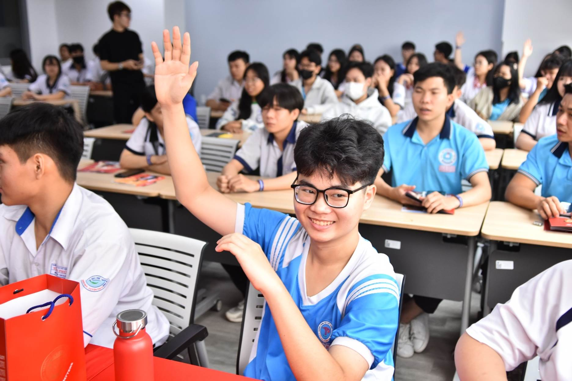 Một điểm nhấn nổi bật của sự kiện là tiểu phẩm “AI và cán cân công lý” chọn ngành nghề do chính sinh viên Khoa Luật thực hiện. Thông qua tình huống giả định về việc lựa chọn ngành học trong thời đại trí tuệ nhân tạo, tiểu phẩm đã đặt ra nhiều câu hỏi thú vị: trí tuệ nhân tạo có thể thay thế luật sư hay không? Người học luật cần chuẩn bị những kỹ năng gì để thích ứng với công nghệ mới? Với cách thể hiện sinh động, gần gũi và giàu tính thực tiễn, phần trình diễn đã giúp các bạn học sinh hiểu rõ hơn vai trò của pháp luật cũng như cơ hội nghề nghiệp trong ngành.