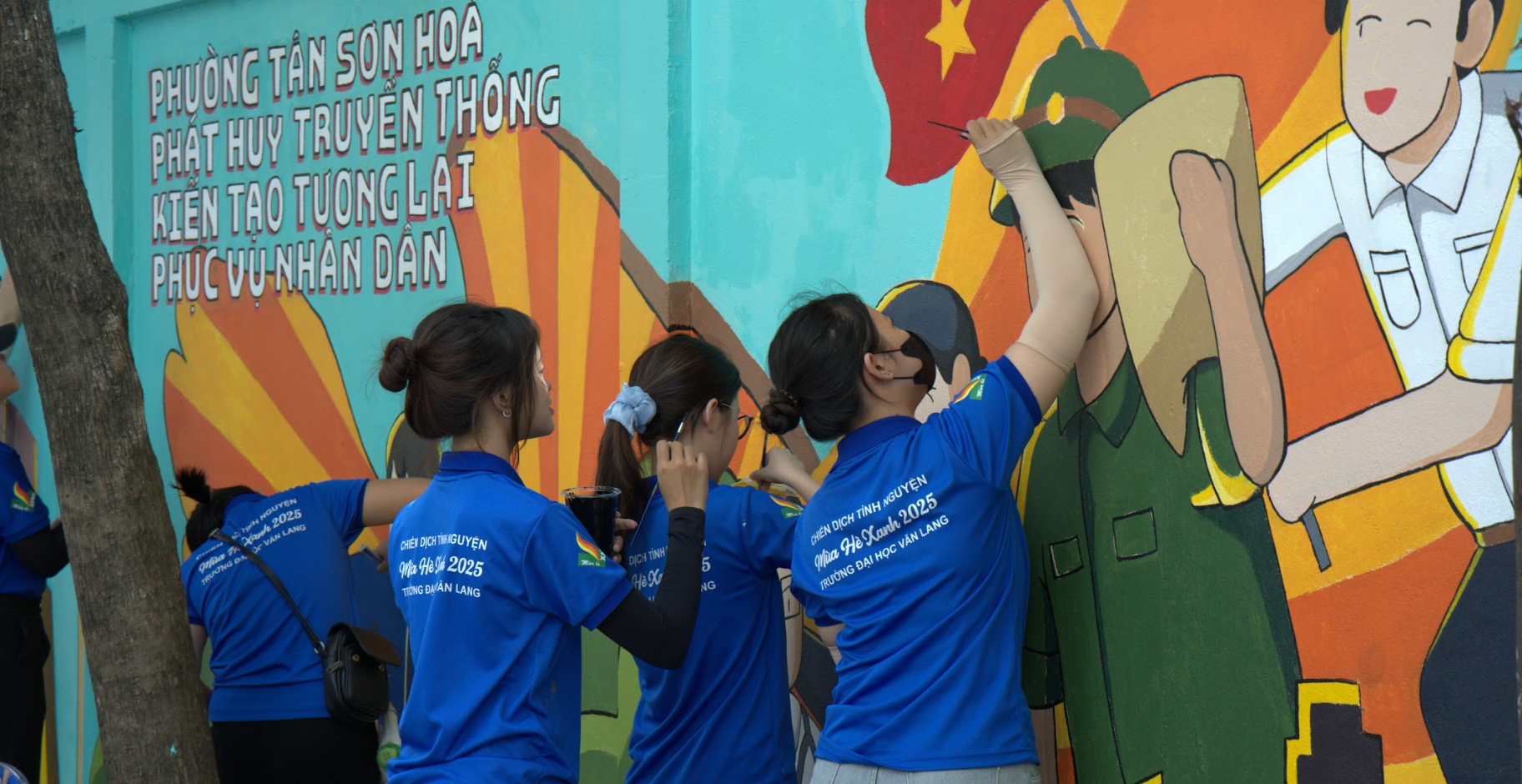 Không chỉ góp sức bằng tri thức hay công nghệ, hơn 200 chiến sĩ đội hình Sơn Vẽ đã dùng sắc màu và đôi tay khéo léo để biến những bức tường tại phường Cầu Ông Lãnh, Tân Sơn Hòa và Ký túc xá Văn Lang (đường Phan Huy Ích) thành những bức tranh sống động. Ba công trình tranh tường với tổng diện tích hơn 125m² mang thông điệp về bảo vệ môi trường, yêu quê hương và sẻ chia yêu thương - những gam màu tươi sáng tô điểm thêm cho hành trình 30.000 giờ tình nguyện.