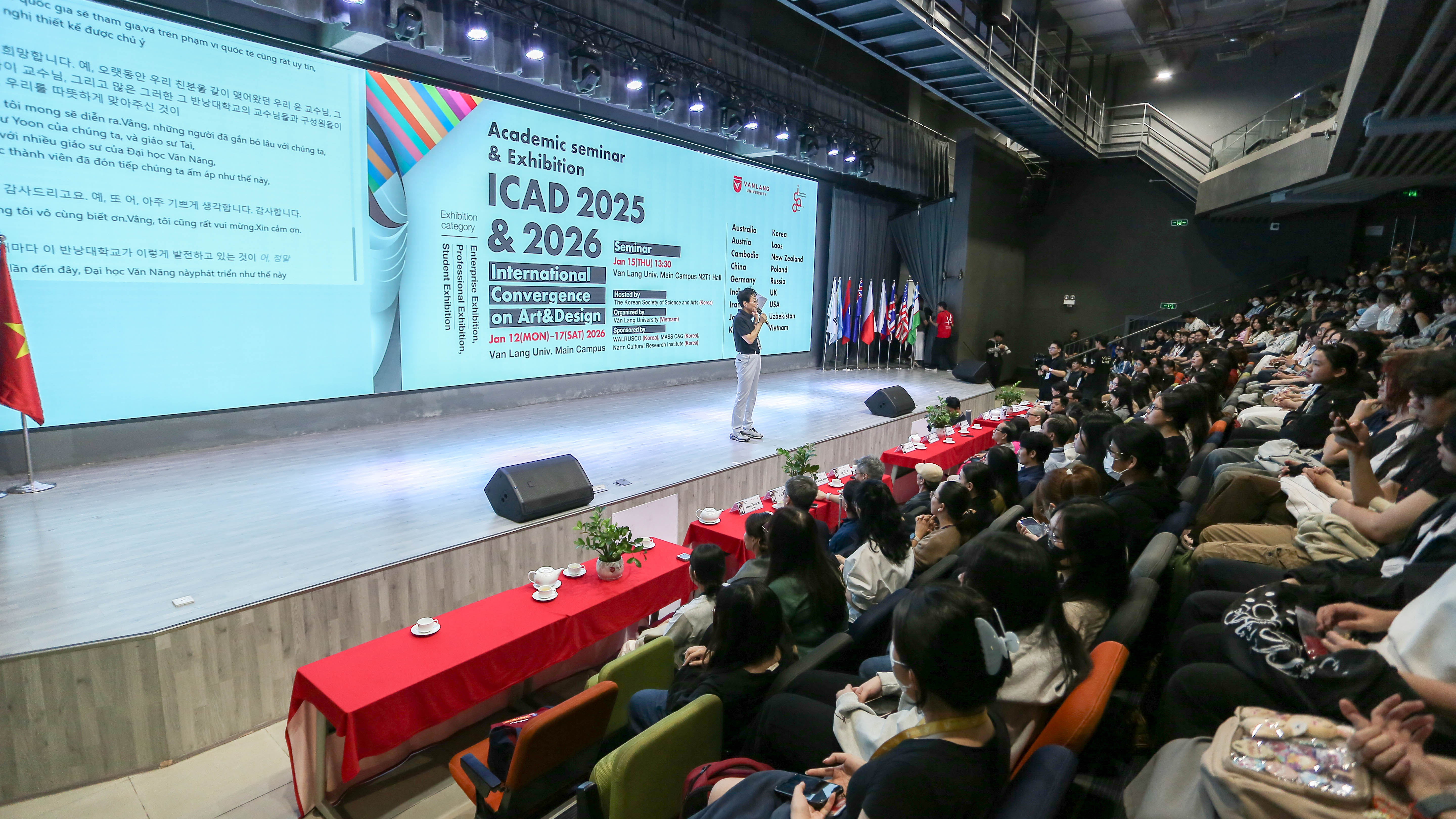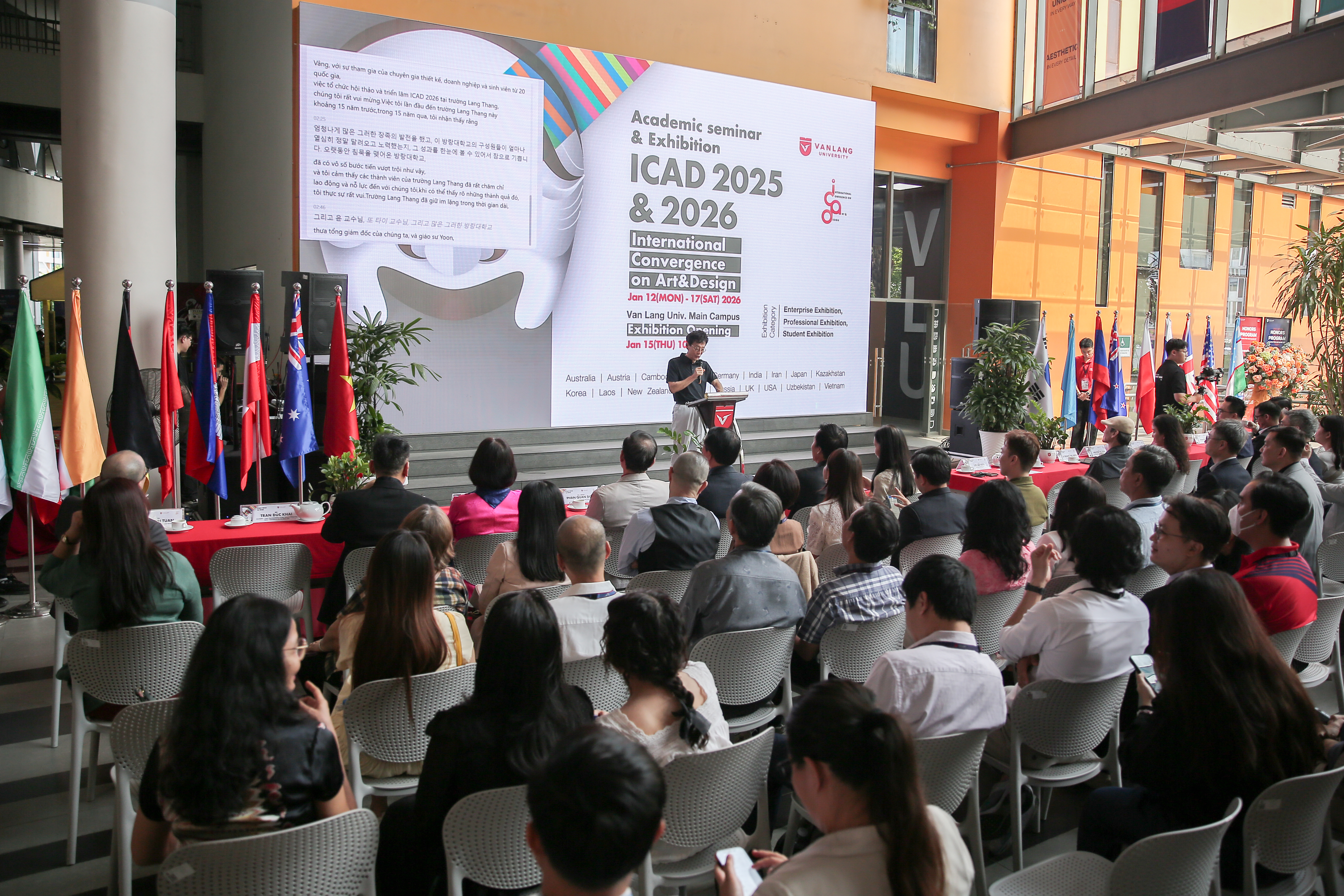 Nhân kỷ niệm 20 năm thành lập Hội Hợp tác Khoa học và Nghệ thuật Hàn Quốc, Triển lãm Thiết kế Quốc tế và Hội thảo học thuật ICAD 2026 (International Convergence on Art & Design) chính thức diễn ra từ ngày 12–17/01/2026 tại Trường Đại học Văn Lang. Sự kiện quy tụ đại diện đến từ 18 quốc gia với gần 300 tác phẩm cùng chuỗi tham luận học thuật chuyên sâu, phản ánh các tiếp cận liên ngành trong nghệ thuật, thiết kế và công nghệ đương đại.