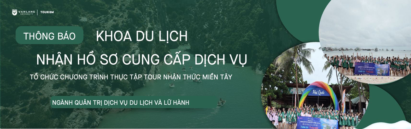 Theo chính sách và quy trình tổ chức tour kiến tập, thực tập và trải nghiệm của Khoa Du lịch ký vào ngày 25/02/2025, Khoa Du lịch thông báo tìm kiếm đơn vị cung cấp dịch vụ tổ chức các doanh nghiệp lữ hành có năng lực, uy tín và kinh nghiệm trong tổ chức tour thực tập.
