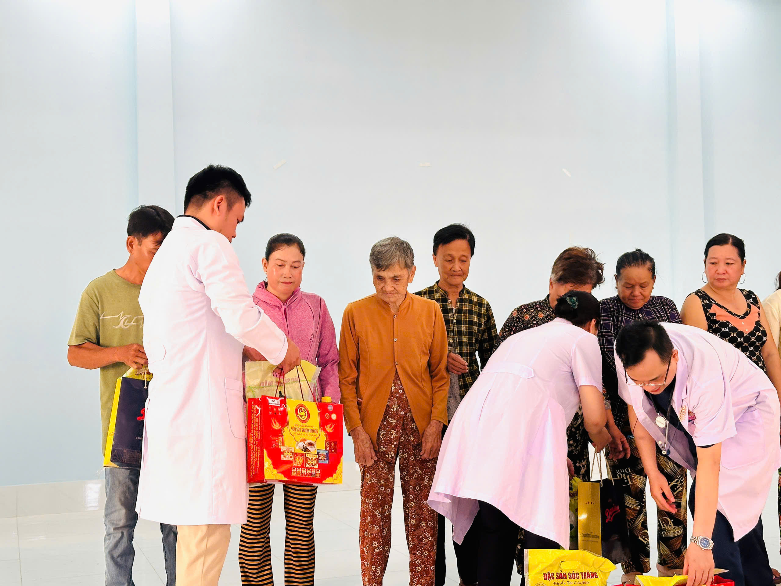 Không chỉ dừng lại ở việc khám và cấp thuốc, đoàn còn trao tặng 100 phần quà cho các nạn nhân chất độc màu da cam, người khuyết tật và những gia đình có hoàn cảnh khó khăn. Những phần quà tuy nhỏ nhưng chứa đựng tấm lòng sẻ chia, nhằm xoa dịu phần nào khó khăn của bà con.