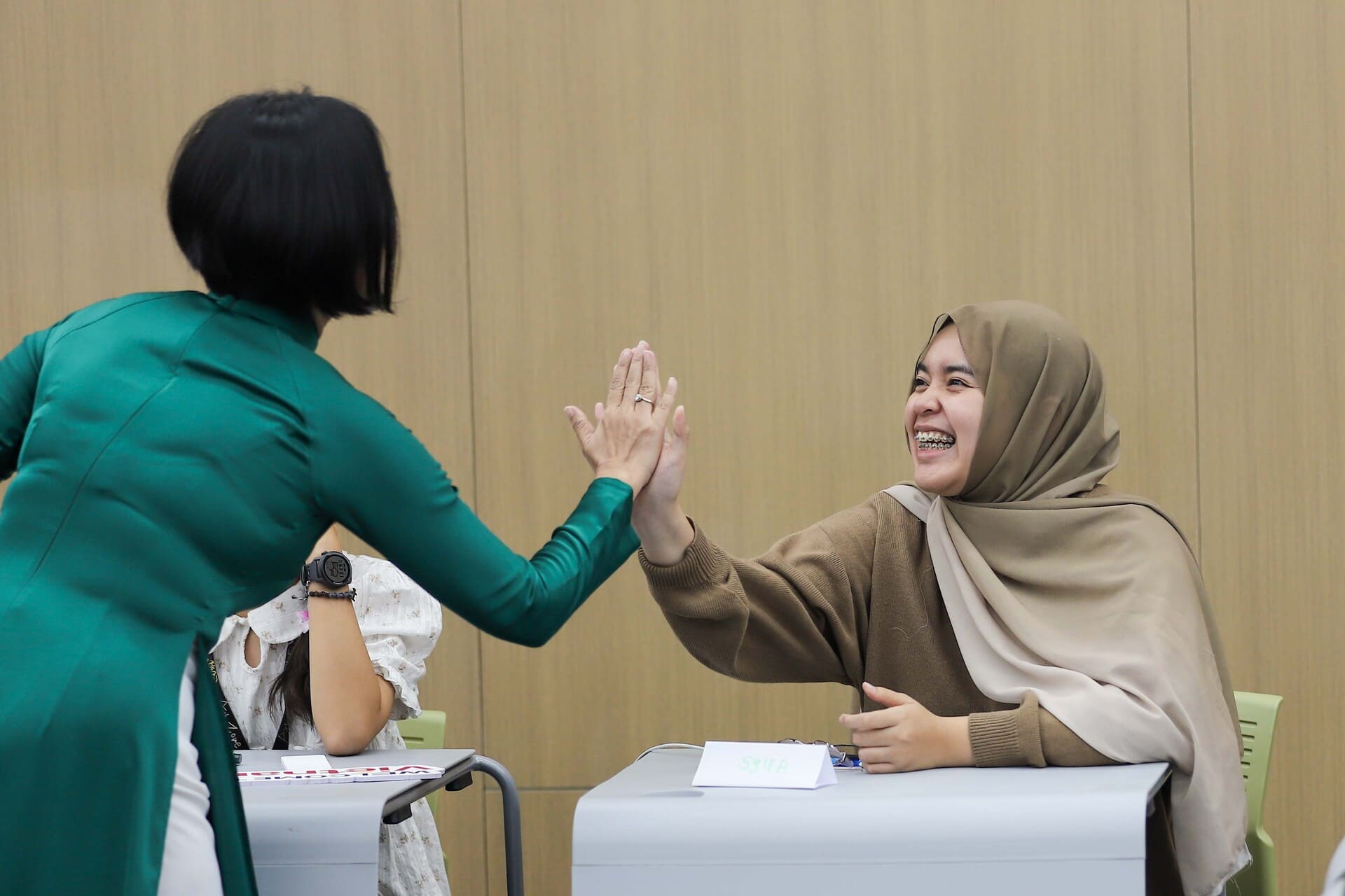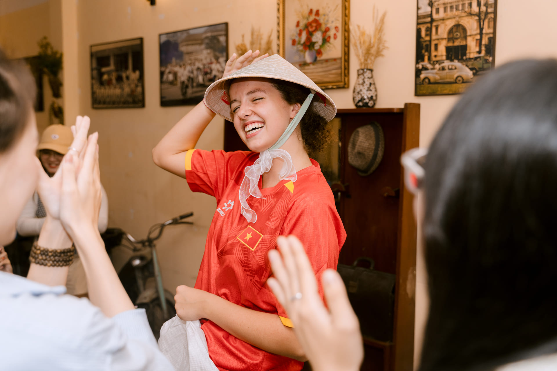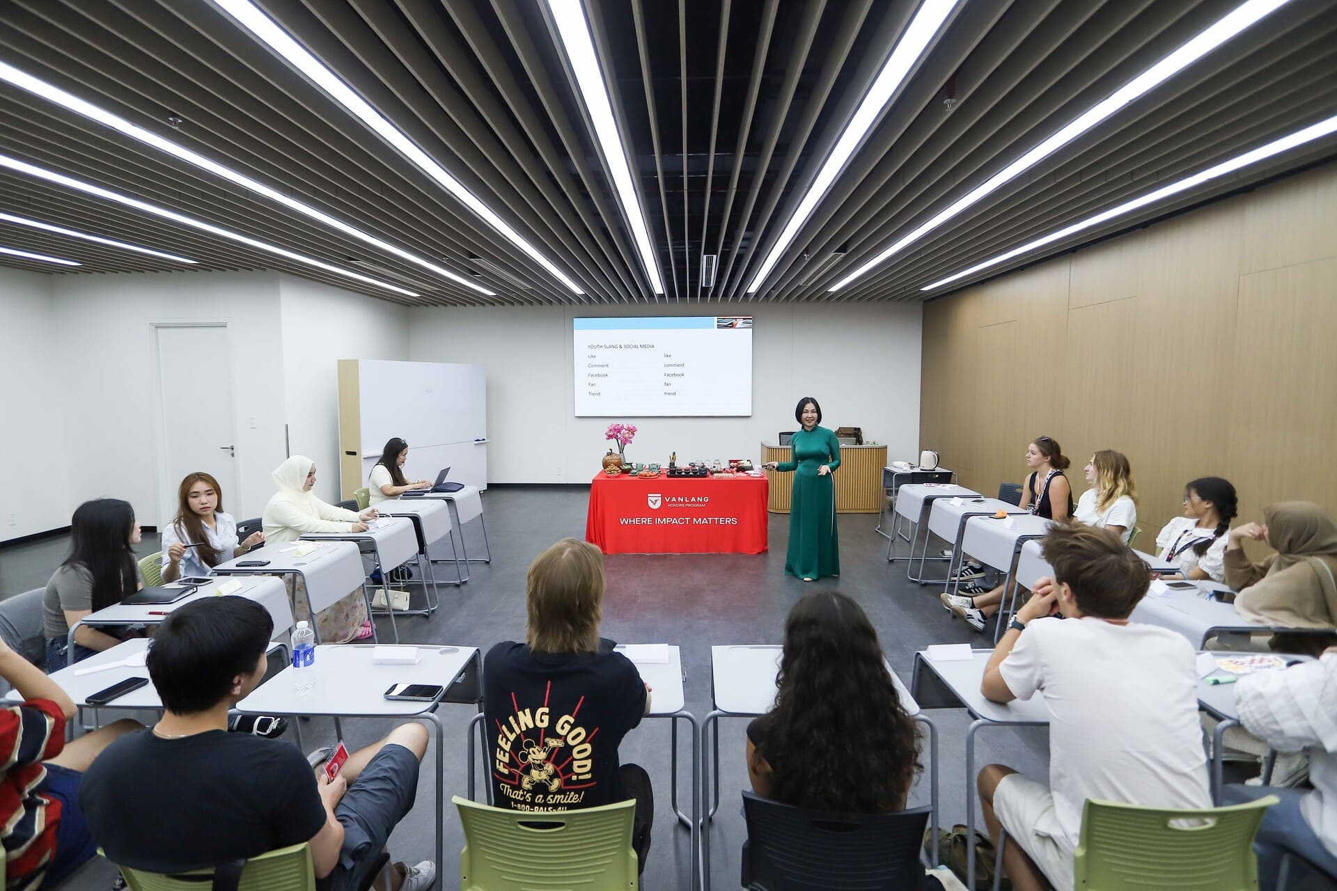Hoạt động “Living Vietnam” gợi mở sự gần gũi trong đời sống thường nhật. Buổi học tiếng Việt tạo nên bầu không khí sôi nổi khi sinh viên tập làm quen bảng chữ cái, học cách giới thiệu bản thân, đếm số và thử “mặc cả” trong tình huống giả định. Những tiếng cười giòn giã, sự bỡ ngỡ nhưng đầy hứng thú đã khiến lớp học trở thành kỷ niệm đáng nhớ.