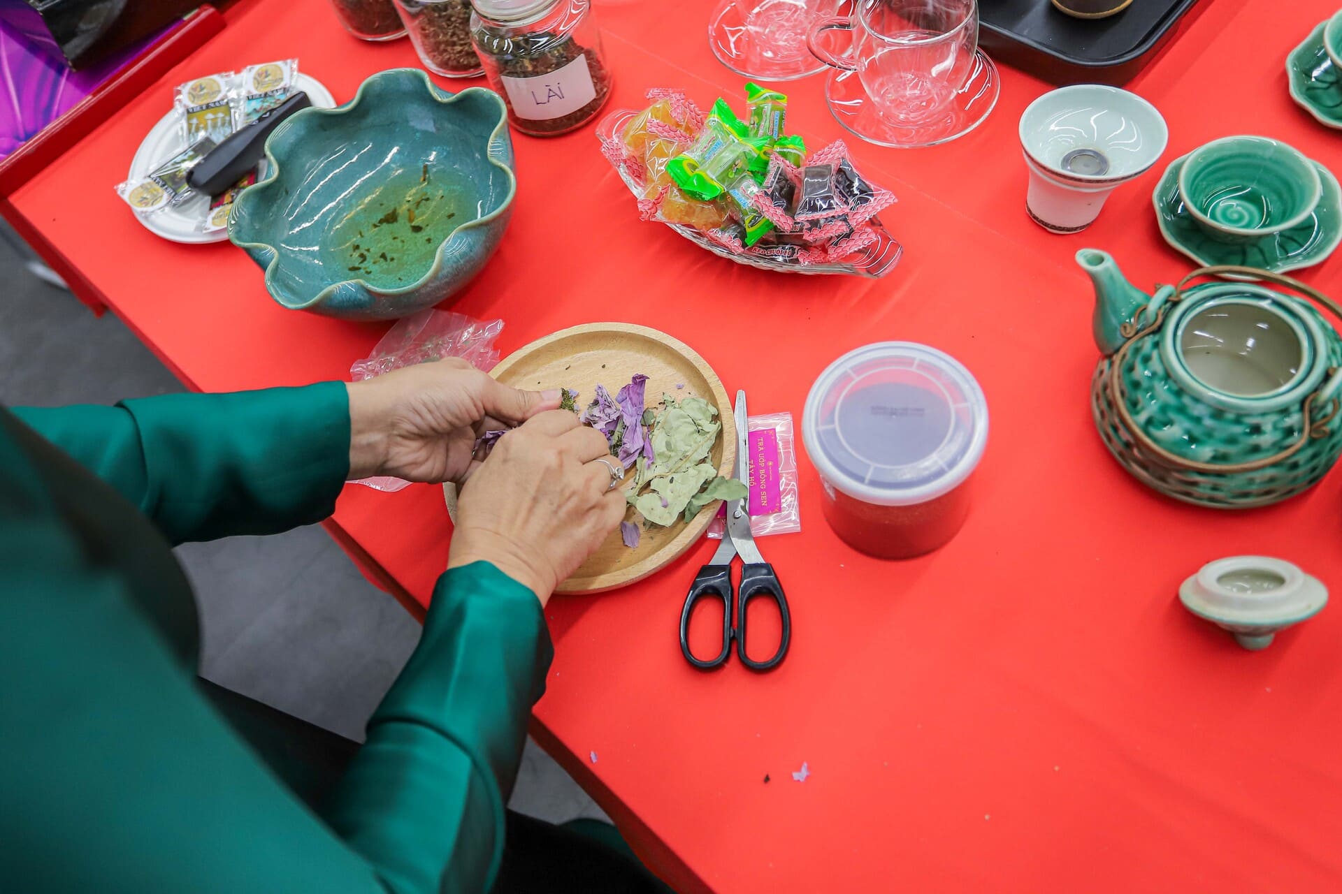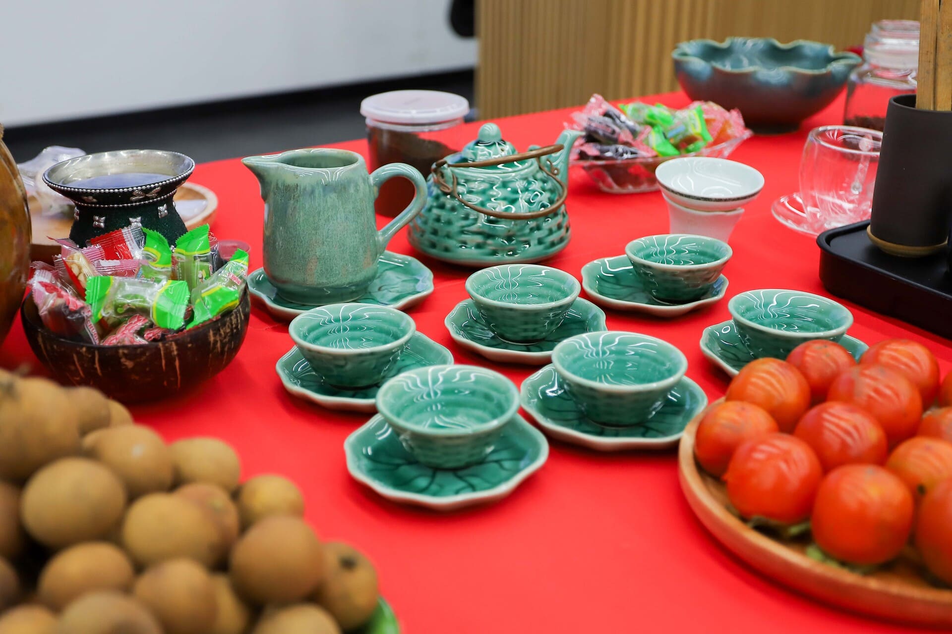 Tiếp đó, workshop về trà và cà phê Việt Nam đưa các bạn trải nghiệm hai loại thức uống quen thuộc trong đời sống người Việt. Từ việc lắng nghe câu chuyện lịch sử, tìm hiểu cách thưởng thức đến tự tay pha chế và nếm thử, sinh viên còn được tiếp xúc gần gũi với nét văn hóa ẩm thực đặc sắc. Điểm nhấn của hoạt động chính là khi mọi người cùng thực hành pha trà, nếm thử cà phê Việt và thưởng thức các món ăn nhẹ truyền thống như bánh xanh, nhãn bắp cải, mứt dừa và nhiều món khác, khiến trải nghiệm trở nên bổ ích và hấp dẫn.