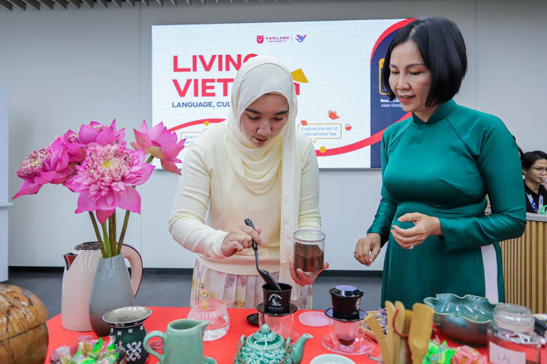 Sinh viên quốc tế khám phá văn hóa ẩm thực Việt qua việc lắng nghe câu chuyện, học cách thưởng thức, tự tay pha chế và nếm thử ẩm thực truyền thống Việt Nam.
