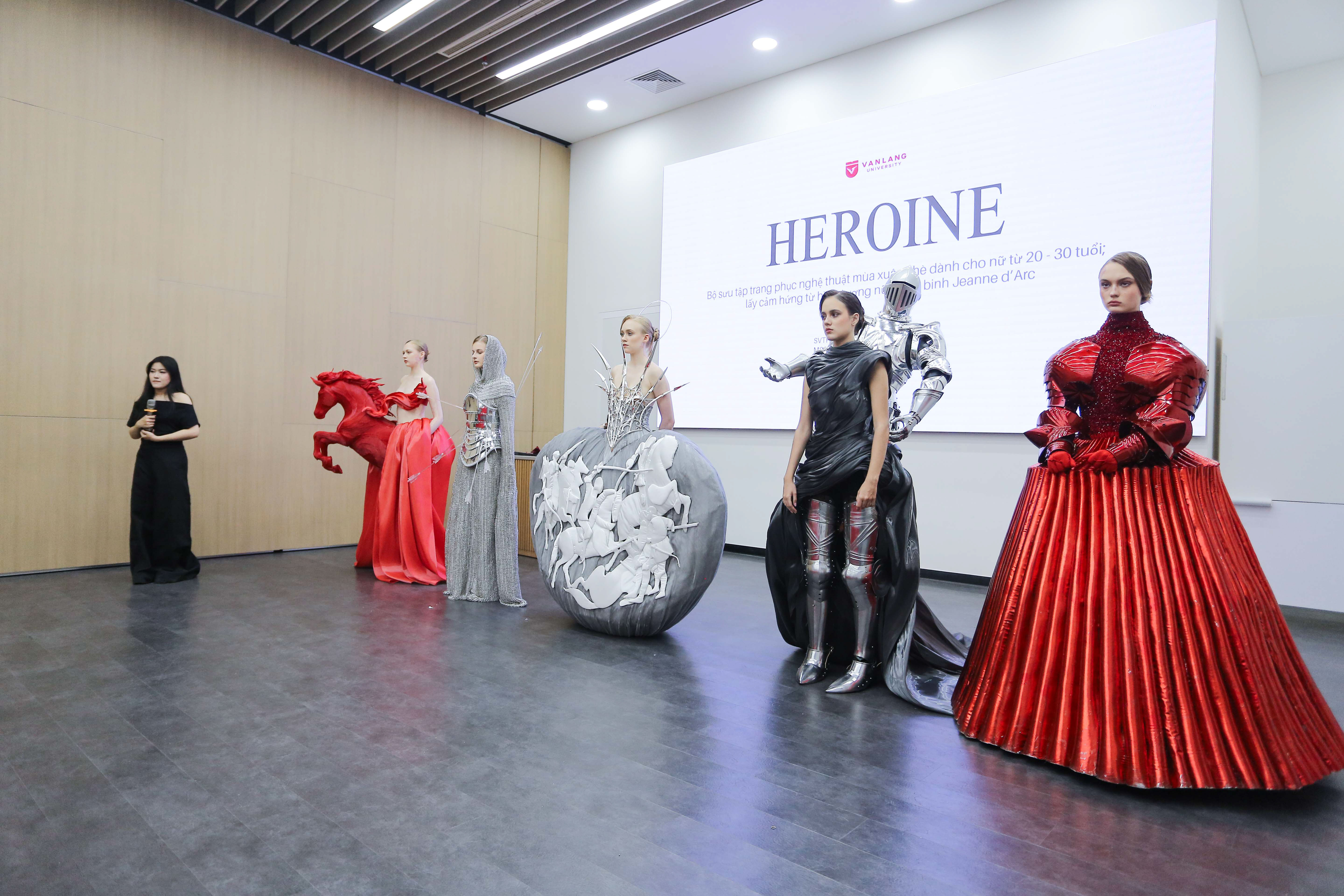 Thủ khoa Lương Công Tiến với "HOANG" - Bộ sưu tập trang phục nghệ thuật mùa Thu-Đông dành cho nữ từ 20 đến 30 tuổi lấy cảm hứng từ giấc mơ ngựa hoang. Chiếm trọn sự khen ngợi từ Hội đồng, đồ án của Lương Công Tiến là sự kết tinh giữa tư duy thẩm mỹ sắc sảo và năng lực thực thi chuyên nghiệp. Lấy cảm hứng từ sự tự do và sức sống mãnh liệt của loài ngựa hoang, Tiến đã chuyển hóa một ý tưởng trừu tượng thành ngôn ngữ thời trang đầy sức nặng. Giấc mơ ngựa hoang khi đưa vào thời trang không chỉ dừng ở vẻ đẹp mỹ thuật, mà còn thể hiện vẻ đẹp phóng khoáng, mà còn khơi mở suy tư về mối quan hệ giữa tự do cá nhân và những ràng buộc của đời sống hiện đại. Điểm khiến đồ án này đạt điểm số cao nhất nằm ở sự chỉn chu tuyệt đối trong mọi khâu: từ kỹ thuật xử lý cấu trúc trang phục phóng khoáng đến cách dàn dựng không gian trưng bày và kỹ năng trình diễn. Đây không chỉ là một bộ sưu tập mà là một tác phẩm nghệ thuật trình diễn sống động khi kỹ thuật chạm đến cảm xúc, thuyết phục hoàn toàn về mặt thị giác lẫn ý đồ nghệ thuật một cách trọn vẹn.