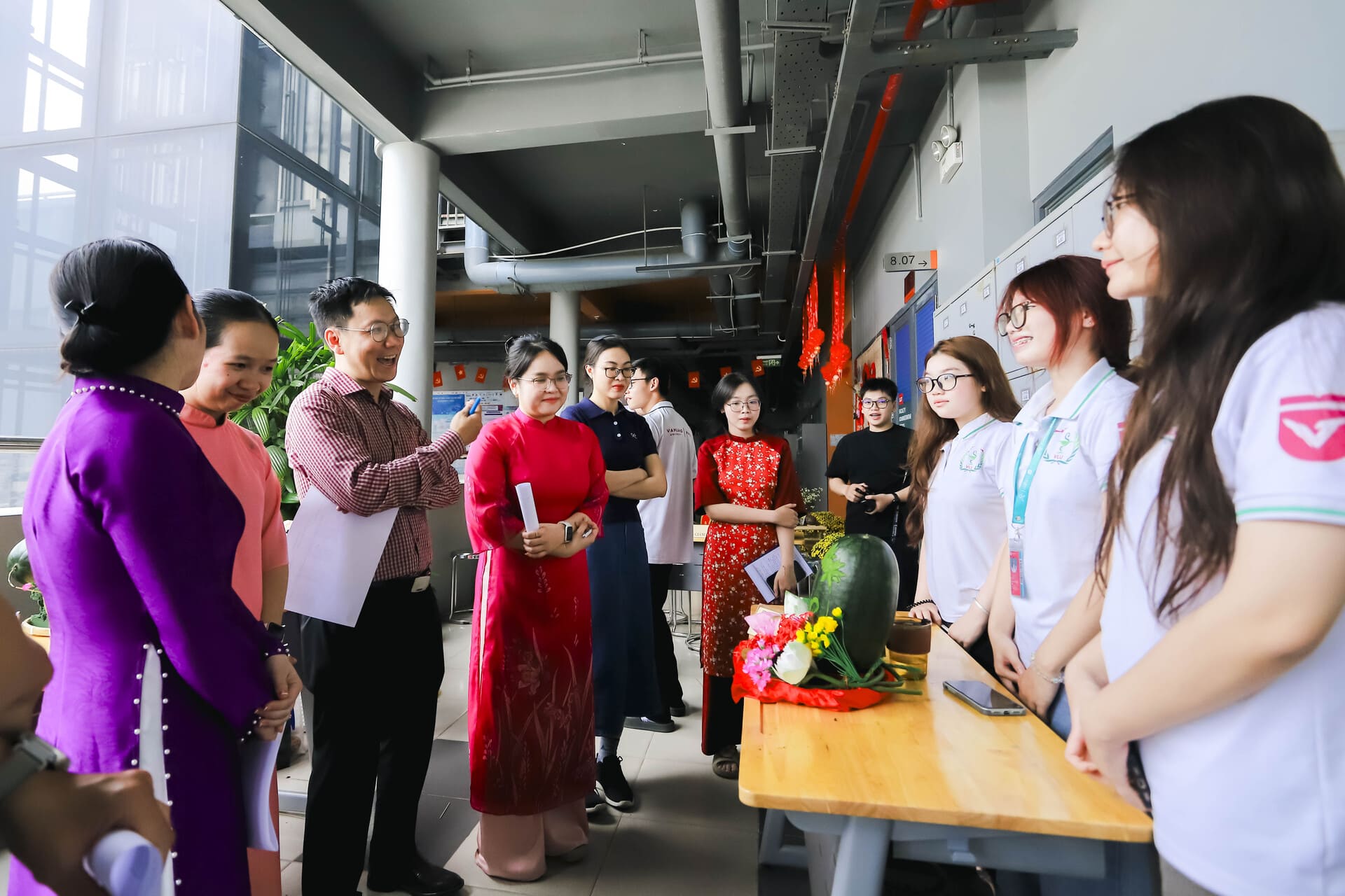 Dưới sự hướng dẫn của ThS. Nguyễn Bảo Cúc Phương cùng đội ngũ giảng viên, sinh viên đã trực tiếp tham gia từ khâu thiết kế đến thi công, kiến tạo không gian Tết cổ truyền hài hòa, thẩm mỹ, mang đậm bản sắc văn hóa Việt trong không gian đô thị hiện đại.
