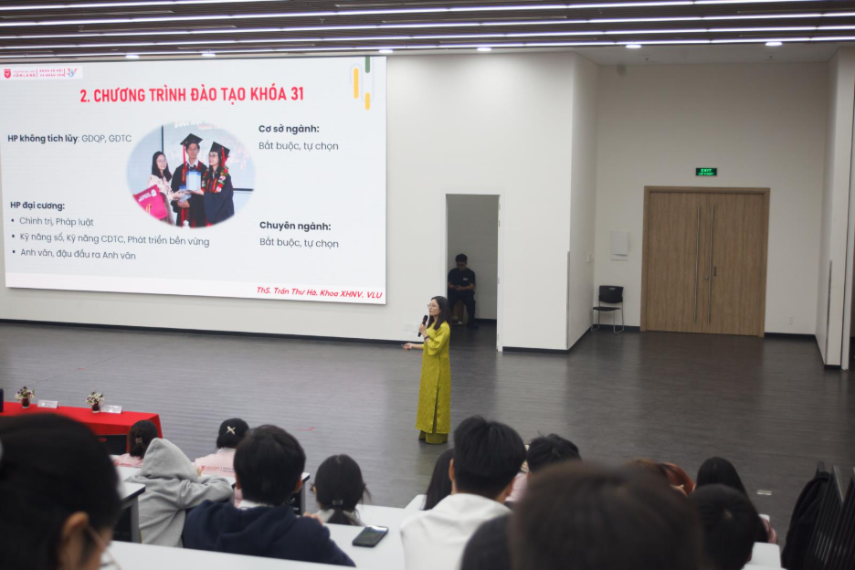 Sau phần khai mạc, Thạc sĩ Trần Thư Hà, Phó Trưởng Ngành Tâm lý học, giới thiệu chương trình đào tạo ngành Tâm lý học với những định hướng học tập, cơ hội nghề nghiệp và lộ trình phát triển năng lực cho sinh viên.