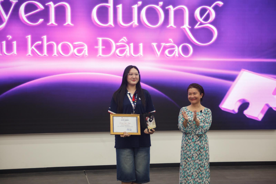 Tiếp theo, Tiến sĩ Nguyễn Bảo Thanh Nghi – Trưởng Khoa Xã hội và Nhân văn – phát biểu khai mạc, gửi lời chào mừng đến các tân sinh viên, đồng thời tuyên dương và trao quà cho thủ khoa K31 hệ Đặc biệt như một lời khích lệ tinh thần học tập.