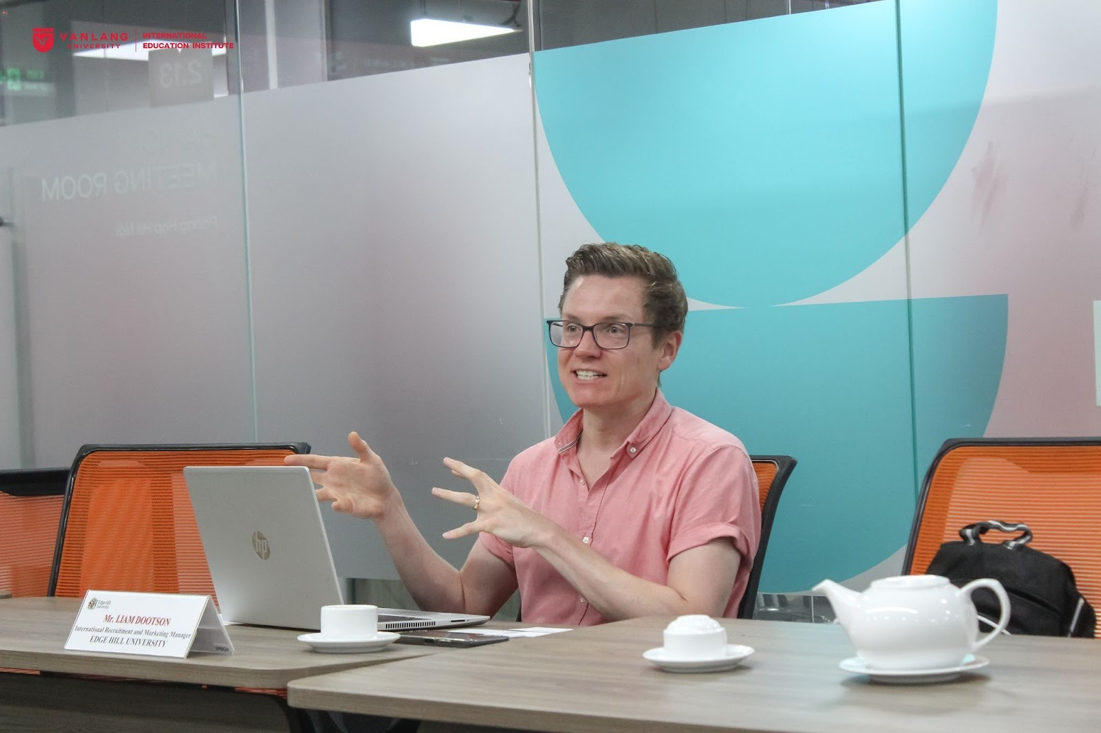 Về phía Đại học Edge Hill, ông Liam Dootson đã giới thiệu về các định hướng phát triển quốc tế của Đại học Edge Hill, đồng thời khẳng định mong muốn mở rộng hợp tác với Đại học Văn Lang thông qua các chương trình liên kết đào tạo, trao đổi học thuật và hoạt động nghiên cứu chung. Ông nhấn mạnh, đây là thời điểm thích hợp để hai trường cùng xây dựng những chương trình học tập kết nối sinh viên Việt Nam với môi trường giáo dục Anh Quốc.