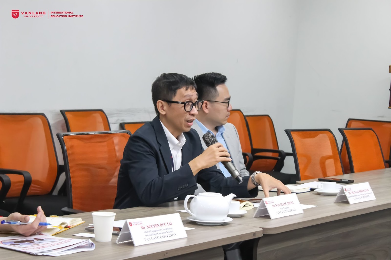 Buổi làm việc có sự hiện diện của TS. Ngô Quang Trung – Phó Hiệu trưởng Trường Đại học Văn Lang, Viện trưởng Viện Đào tạo Quốc tế, cùng các cán bộ đến từ Viện và đại diện các phòng ban liên quan. Phía đối tác Anh Quốc là ông Liam Dootson – Giám đốc Tuyển sinh quốc tế và Truyền thông- Đại học Edge Hill.