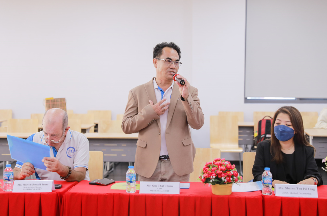 Ông Qua Thất Chuân - Tổng Giám đốc Công ty Cổ phần Y Khoa NQ bày tỏ tình cảm dành cho Trường Đại học Văn Lang: “Chúng tôi luôn tin tưởng khi lựa chọn Văn Lang để cùng tạo ra những dự án hợp tác lâu dài và mang chúng lan tỏa đến cộng đồng. Điều chúng tôi quan tâm là sức khỏe và mong muốn mọi người hiểu hơn về cấp cứu hồi sức tim CPR một cách chính xác nhất để giúp đỡ cộng đồng”.
