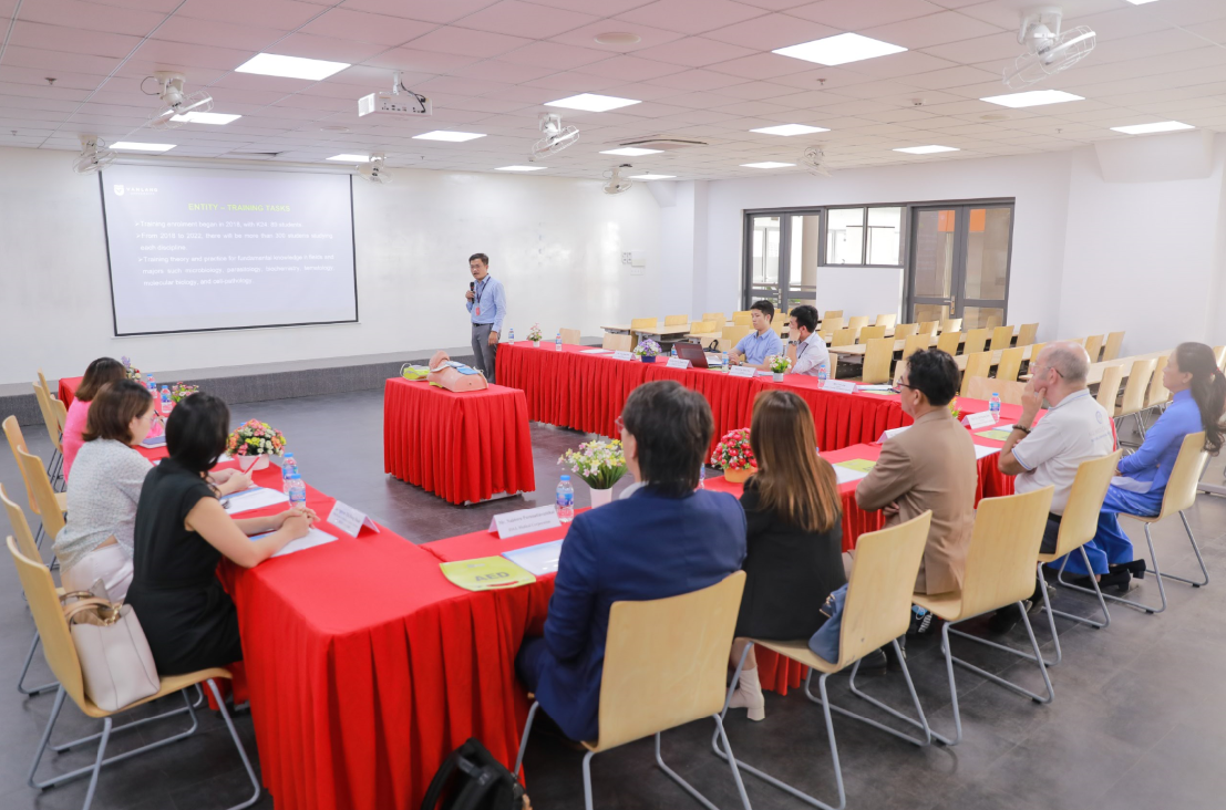 Mở đầu buổi trao đổi, ThS. BS. Nguyễn Thanh Toàn - Phó trưởng Khoa Điều dưỡng Trường Đại học Văn Lang giới thiệu sơ lược về sứ mệnh tầm nhìn, các chương trình nghiên cứu, cơ sở vật chất và thành tựu mà Văn Lang đạt được trên hành trình 28 năm phát triển, những điểm nổi bật trong quá trình tích lũy và phát huy nội lực của Khoa Điều dưỡng từ năm 2017 đến nay: nỗ lực nâng cao chất lượng giảng dạy, đầu tư môi trường cơ sở vật chất tân tiến hiện đại, tạo điều kiện và cơ hội đặc biệt cho sinh viên được học tập và phát triển kiến thức Y khoa chuyên sâu, các chương trình nghiên cứu khoa học và thực tập liên kết bệnh viện lớn nổi tiếng tại TP. HCM.